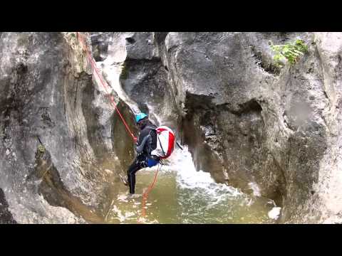 Auf jeden Fall wird diese Schlucht überraschen, in einem Landstrich wo dieser Canyon unter den vielen Schluchten nicht viel Bedeutung hat. Die Schlucht könnten wir in zwei Hälften aufteilen. Die erste, mit engen Gängen, Abseilungen, Sprünge, Rutschen und Felsprünge. Die zweite Hälfte, eine tiefe Schlucht mit langen Abseilungen. Das Ende des Canyon liegt ganz in der nähe vom Dorf Estaronillo.