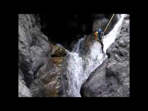 Hier fängt Canyoning-Spass schon bei der Anfahrt an, unglaubliche Berglandschaft wobei am Ende wir einen sehr schönen Blick zu einem Wasserfall, zyklopförmige Felson und tiefe Brunnen die uns viel Abenteuer versprechen. Vielleicht wird der Rückweg uns ein bischen zur Last, hohe Felsblöche können da schon monoton werden.